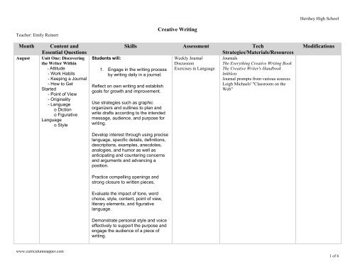 High School Creative Writing Curriculum Map